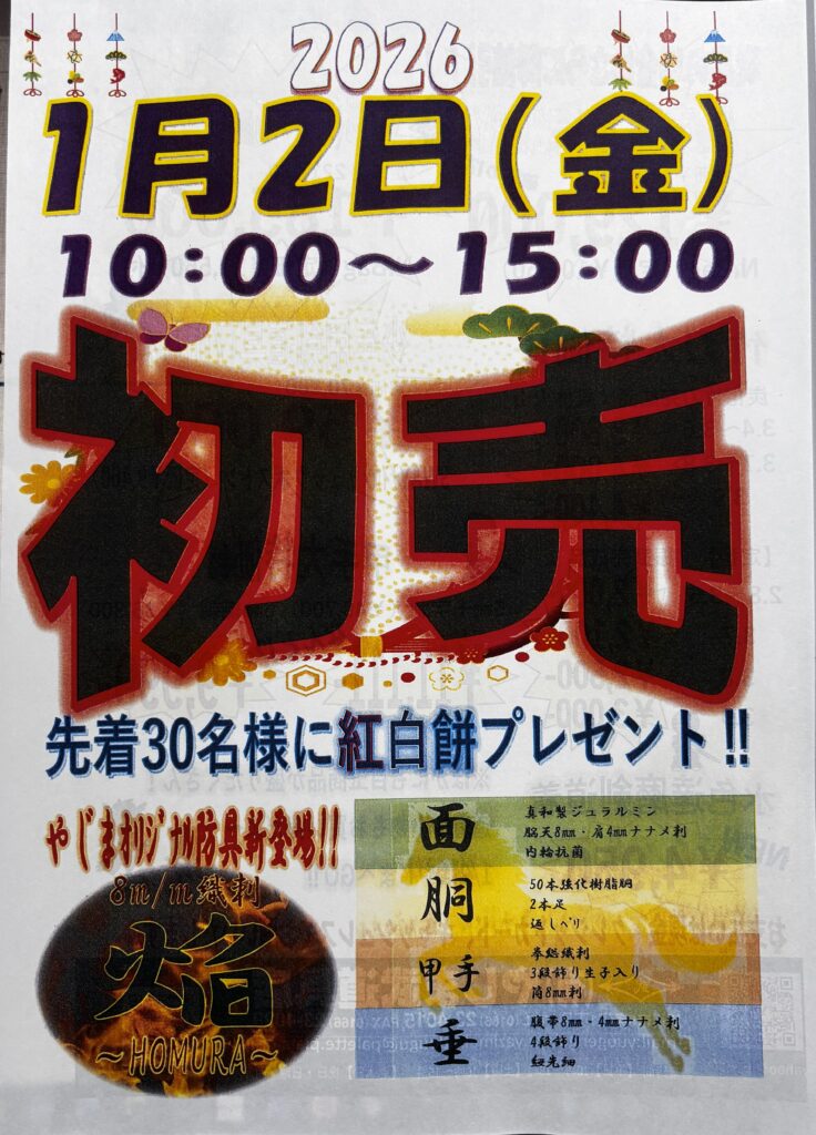 2026年 1月2日(金) 10:00~15:00にやじまの初売りが行われます!